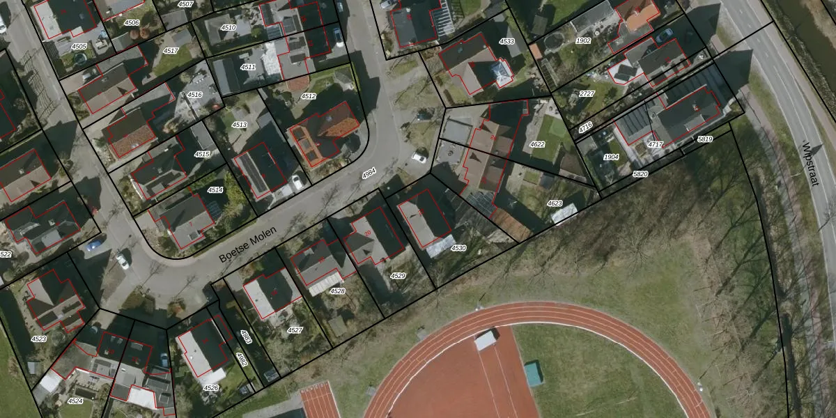 Het perceel waarop Boetse Molen 22 staat heeft een oppervlakte van 436 m². Dit is een groot perceel. De perceeloppervlakte wordt geregistreerd door het Kadaster. Gedetailleerde informatie over de maten van dit perceel kunt u vinden in het rapport Kadastrale kaart met maatvoering van Boetse Molen 22.