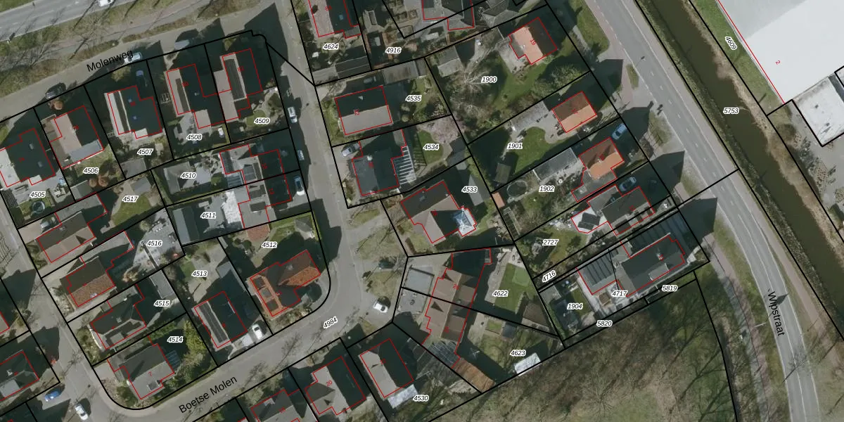Het perceel waarop Boetse Molen 28 staat heeft een oppervlakte van 450 m². Dit is een groot perceel. De perceeloppervlakte wordt geregistreerd door het Kadaster. Gedetailleerde informatie over de maten van dit perceel kunt u vinden in het rapport Kadastrale kaart met maatvoering van Boetse Molen 28.