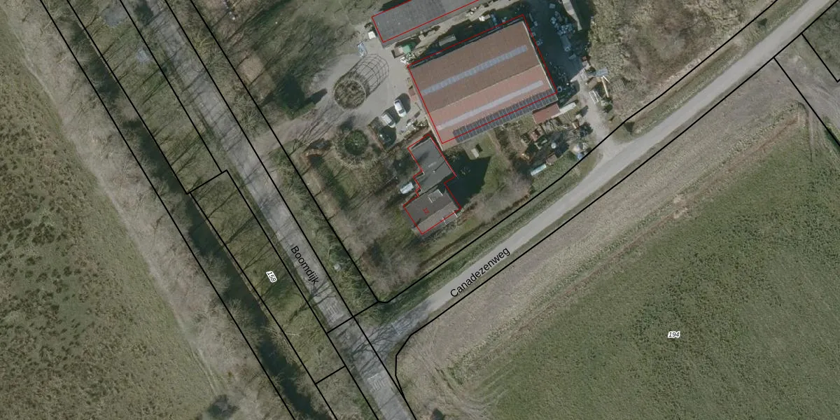 Het perceel waarop Boomdijk 12 staat heeft een oppervlakte van 8,2 ha. Dit is een zeer groot perceel. De perceeloppervlakte wordt geregistreerd door het Kadaster. Gedetailleerde informatie over de maten van dit perceel kunt u vinden in het rapport Kadastrale kaart met maatvoering van Boomdijk 12.