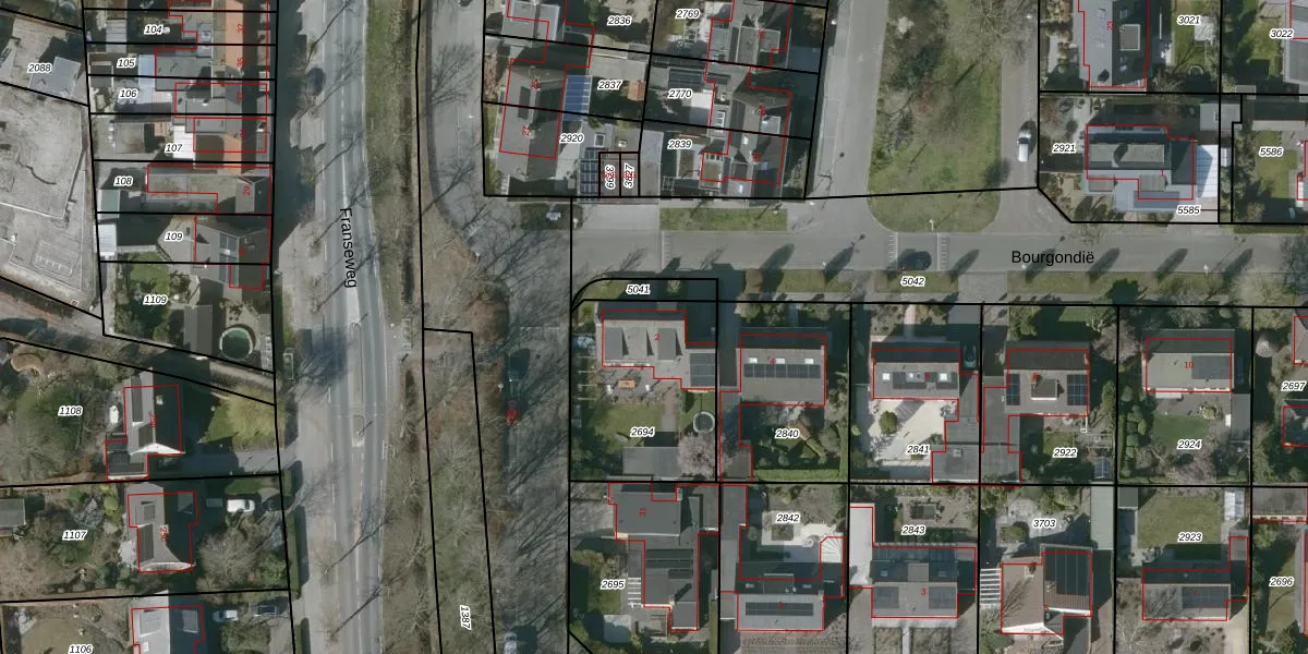 Het perceel waarop Bourgondië 2 staat heeft een oppervlakte van 624 m². Dit is een groot perceel. De perceeloppervlakte wordt geregistreerd door het Kadaster. Gedetailleerde informatie over de maten van dit perceel kunt u vinden in het rapport Kadastrale kaart met maatvoering van Bourgondië 2.