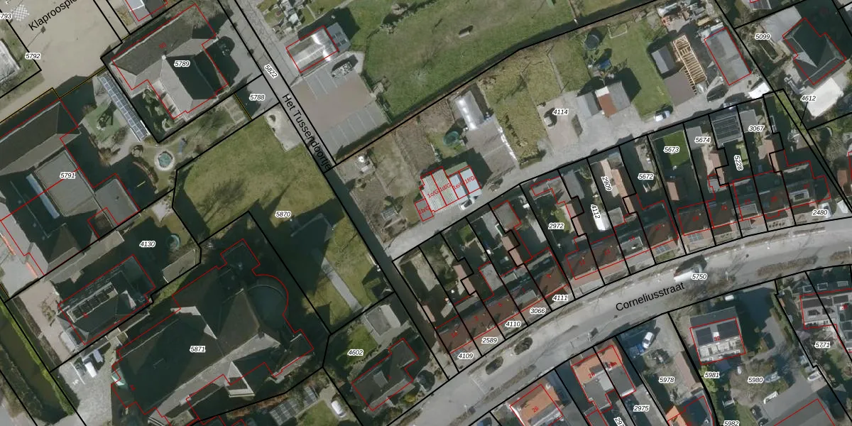 Het perceel waarop Corneliusstraat 1-b-G staat heeft een oppervlakte van 2939 m². Dit is een zeer groot perceel. De perceeloppervlakte wordt geregistreerd door het Kadaster. Gedetailleerde informatie over de maten van dit perceel kunt u vinden in het rapport Kadastrale kaart met maatvoering van Corneliusstraat 1-b-G.