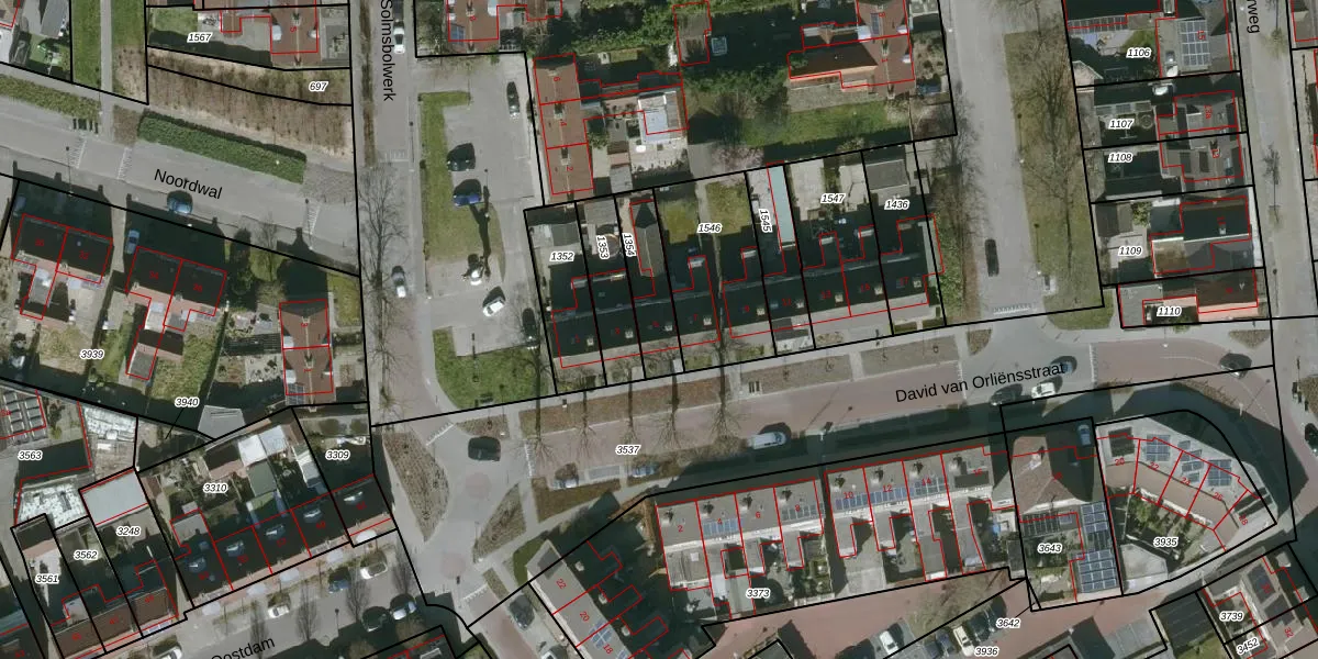 Gebruik de zoekbalk of klik op een perceel voor informatie over de adressen binnen dit perceel.