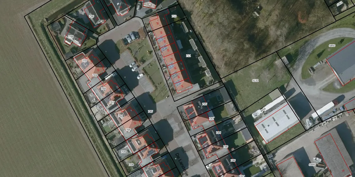 De Landerije 14 is gelegen op kadastraal perceel SBG02AB711. Deze kadastrale aanduiding is uniek en wordt gebruikt door het Kadaster om eigendomsrechten en andere zakelijke rechten vast te leggen. Het perceel maakt onderdeel uit van de kadastrale gemeente Steenbergen.