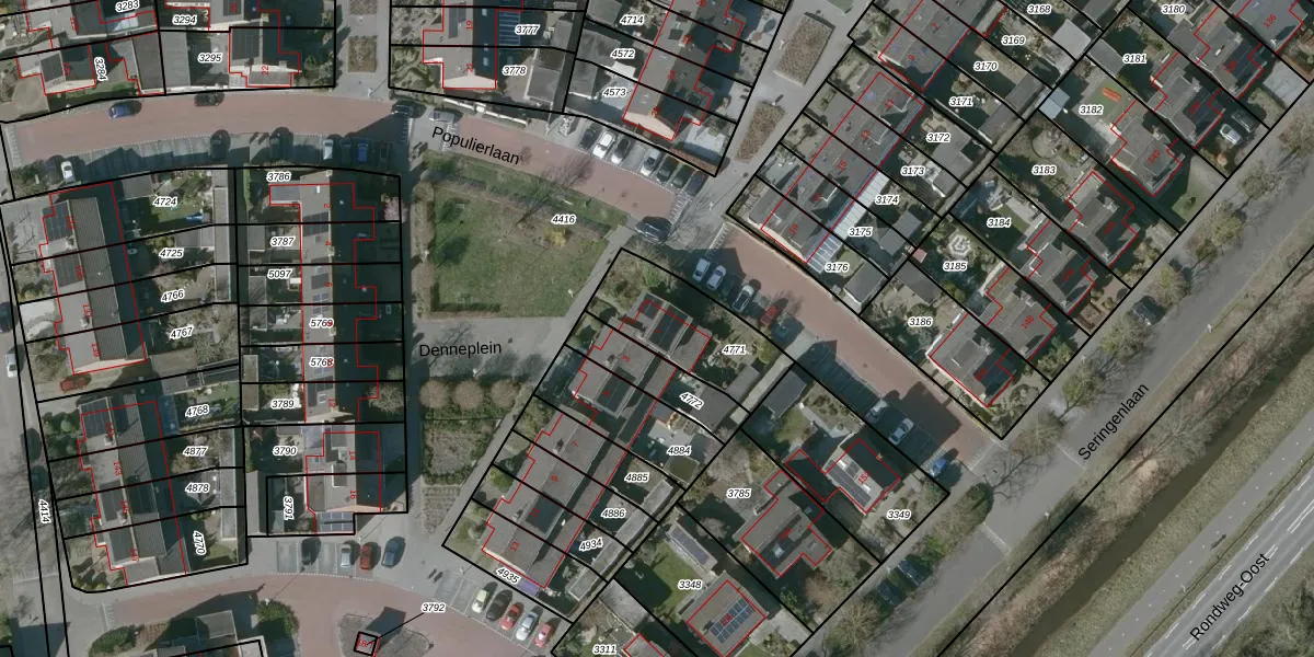 Het perceel waarop Denneplein 1 staat heeft een oppervlakte van 343 m². Dit is een groot perceel. De perceeloppervlakte wordt geregistreerd door het Kadaster. Gedetailleerde informatie over de maten van dit perceel kunt u vinden in het rapport Kadastrale kaart met maatvoering van Denneplein 1.
