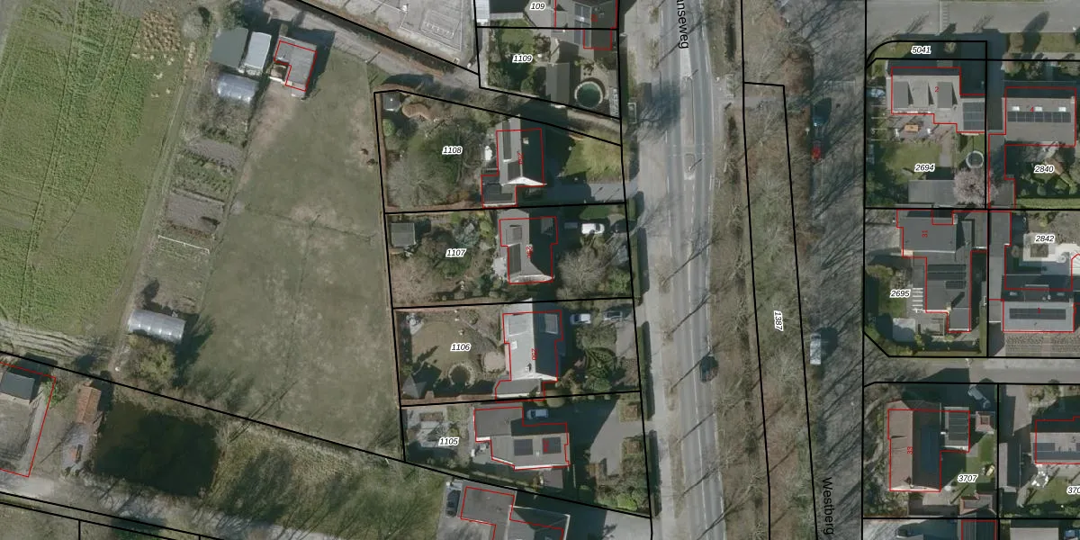 Gebruik de zoekbalk of klik op een perceel voor informatie over de adressen binnen dit perceel.