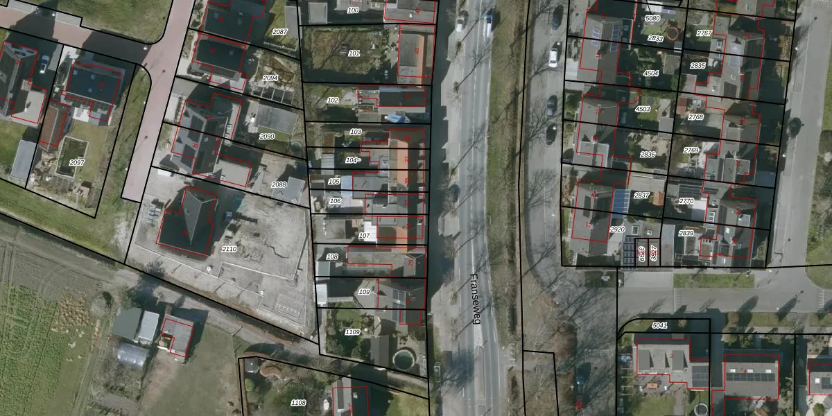 Franseweg 33 is gelegen op kadastraal perceel SBG02Y106. Deze kadastrale aanduiding is uniek en wordt gebruikt door het Kadaster om eigendomsrechten en andere zakelijke rechten vast te leggen. Het perceel maakt onderdeel uit van de kadastrale gemeente Steenbergen.