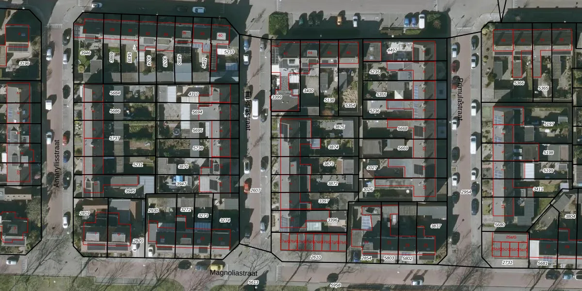Het perceel waarop Fuksiastraat 3 staat heeft een oppervlakte van 186 m². Dit is een middelgroot perceel. De perceeloppervlakte wordt geregistreerd door het Kadaster. Gedetailleerde informatie over de maten van dit perceel kunt u vinden in het rapport Kadastrale kaart met maatvoering van Fuksiastraat 3.