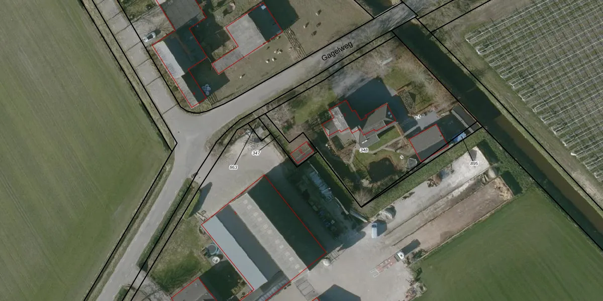 Gagelweg 2-a-T is gelegen op kadastraal perceel SBG02AC347. Deze kadastrale aanduiding is uniek en wordt gebruikt door het Kadaster om eigendomsrechten en andere zakelijke rechten vast te leggen. Het perceel maakt onderdeel uit van de kadastrale gemeente Steenbergen.