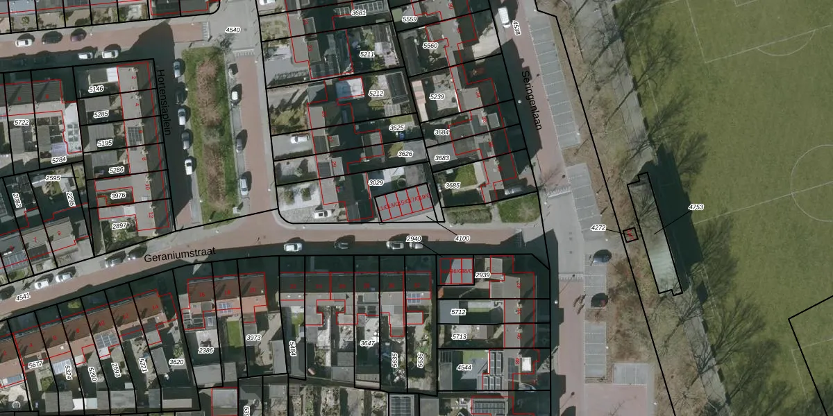 Geraniumstraat 17-G is gelegen op kadastraal perceel SBG02Q4100. Deze kadastrale aanduiding is uniek en wordt gebruikt door het Kadaster om eigendomsrechten en andere zakelijke rechten vast te leggen. Het perceel maakt onderdeel uit van de kadastrale gemeente Steenbergen.
