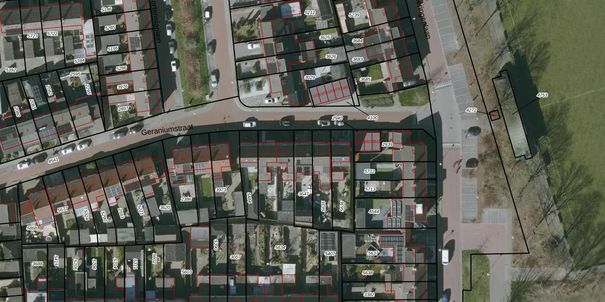 Geraniumstraat 28 is gelegen op kadastraal perceel SBG02Q3647. Deze kadastrale aanduiding is uniek en wordt gebruikt door het Kadaster om eigendomsrechten en andere zakelijke rechten vast te leggen. Het perceel maakt onderdeel uit van de kadastrale gemeente Steenbergen.