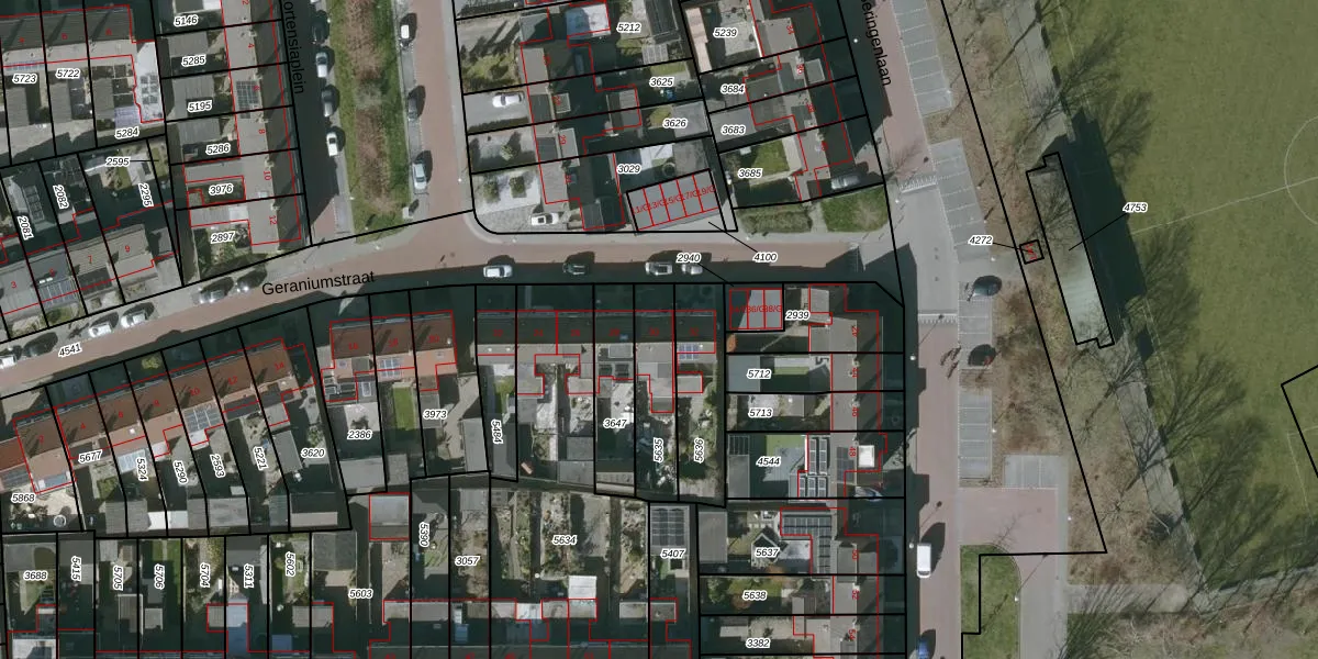 Geraniumstraat 30 is gelegen op kadastraal perceel SBG02Q5635. Deze kadastrale aanduiding is uniek en wordt gebruikt door het Kadaster om eigendomsrechten en andere zakelijke rechten vast te leggen. Het perceel maakt onderdeel uit van de kadastrale gemeente Steenbergen.
