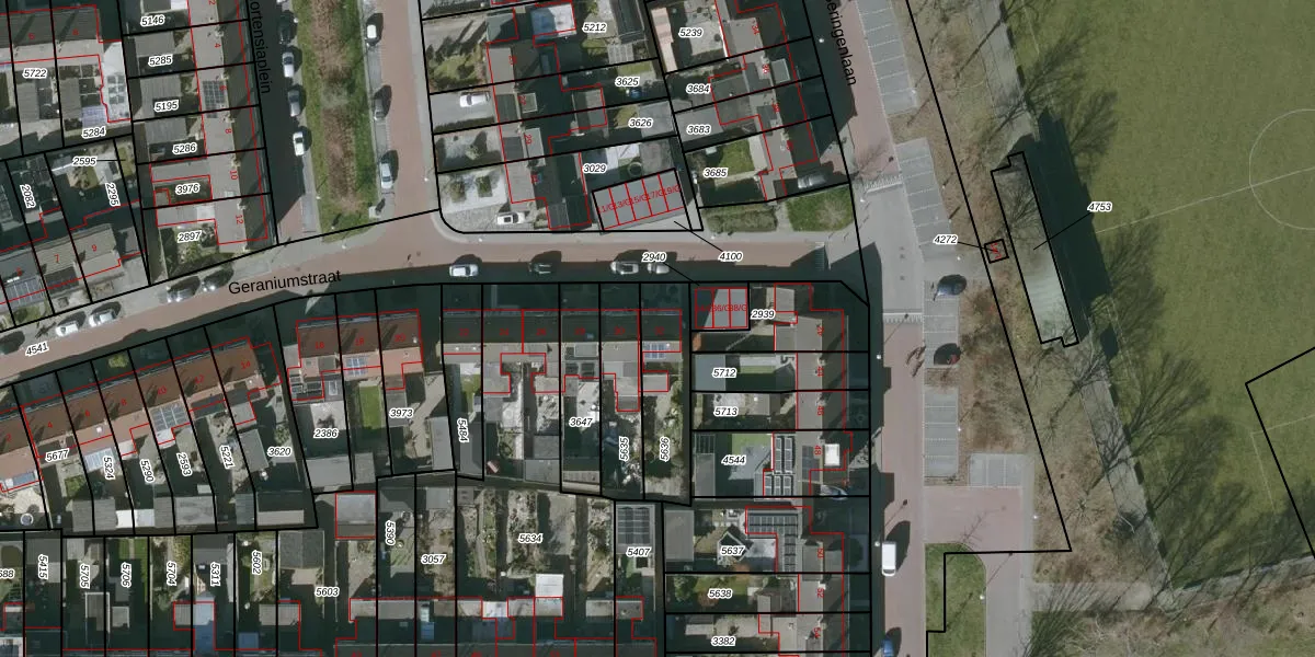 Het perceel waarop Geraniumstraat 32 staat heeft een oppervlakte van 250 m². Dit is een middelgroot perceel. De perceeloppervlakte wordt geregistreerd door het Kadaster. Gedetailleerde informatie over de maten van dit perceel kunt u vinden in het rapport Kadastrale kaart met maatvoering van Geraniumstraat 32.