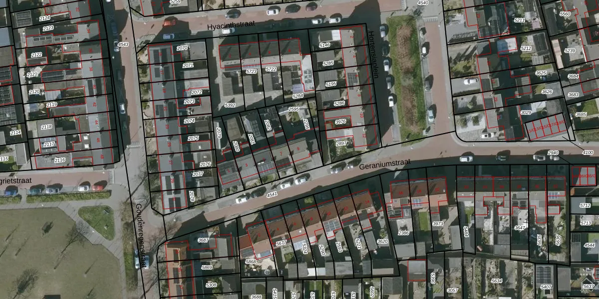 Het perceel waarop Geraniumstraat 9 staat heeft een oppervlakte van 237 m². Dit is een middelgroot perceel. De perceeloppervlakte wordt geregistreerd door het Kadaster. Gedetailleerde informatie over de maten van dit perceel kunt u vinden in het rapport Kadastrale kaart met maatvoering van Geraniumstraat 9.