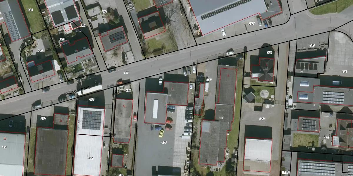 Het perceel waarop Gibsonstraat 7 staat heeft een oppervlakte van 2082 m². Dit is een zeer groot perceel. De perceeloppervlakte wordt geregistreerd door het Kadaster. Gedetailleerde informatie over de maten van dit perceel kunt u vinden in het rapport Kadastrale kaart met maatvoering van Gibsonstraat 7.
