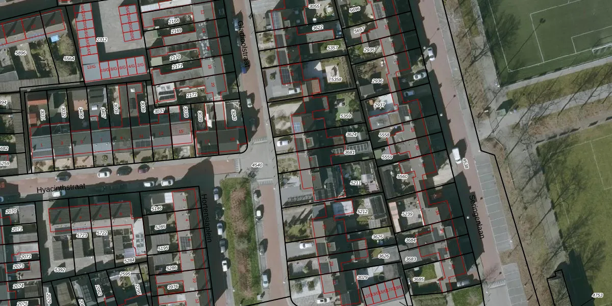 Het perceel waarop Gladioolstraat 21 staat heeft een oppervlakte van 189 m². Dit is een middelgroot perceel. De perceeloppervlakte wordt geregistreerd door het Kadaster. Gedetailleerde informatie over de maten van dit perceel kunt u vinden in het rapport Kadastrale kaart met maatvoering van Gladioolstraat 21.