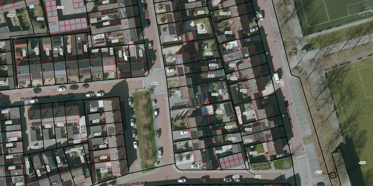 Het perceel waarop Gladioolstraat 23 staat heeft een oppervlakte van 372 m². Dit is een groot perceel. De perceeloppervlakte wordt geregistreerd door het Kadaster. Gedetailleerde informatie over de maten van dit perceel kunt u vinden in het rapport Kadastrale kaart met maatvoering van Gladioolstraat 23.