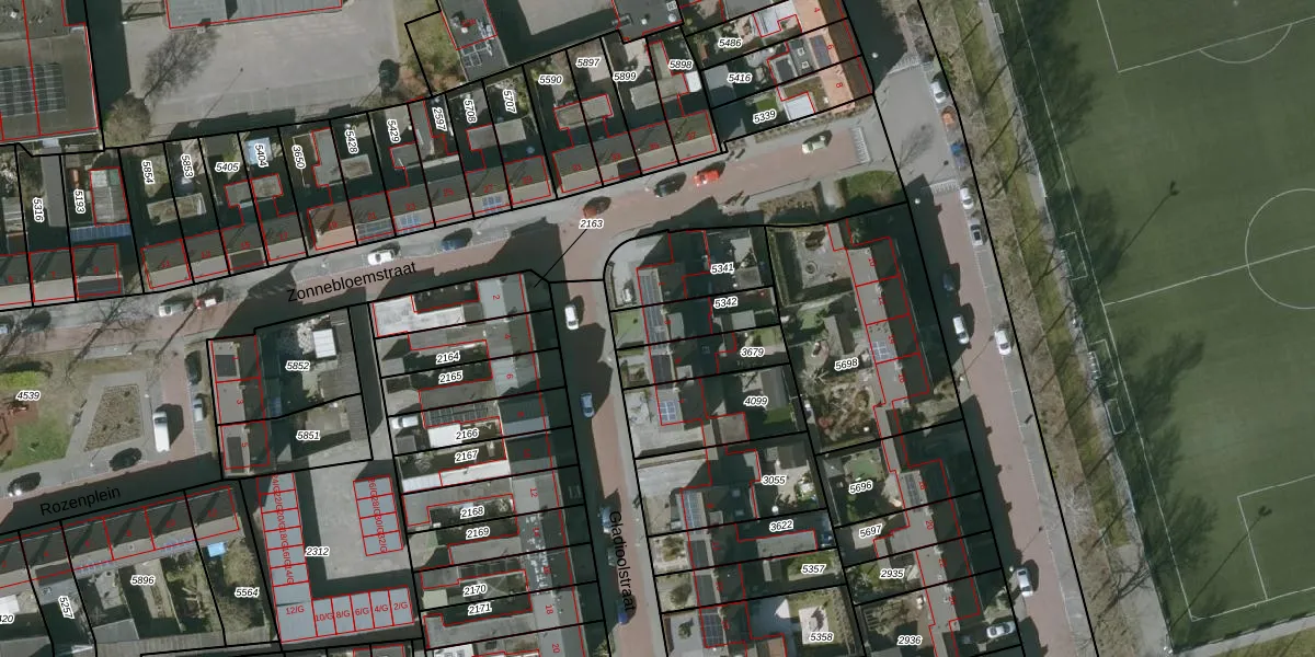 Gebruik de zoekbalk of klik op een perceel voor informatie over de adressen binnen dit perceel.