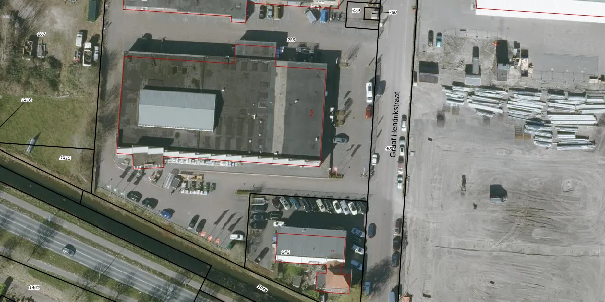 Het perceel waarop Graaf Hendrikstraat 3-b staat heeft een oppervlakte van 1,1 ha. Dit is een zeer groot perceel. De perceeloppervlakte wordt geregistreerd door het Kadaster. Gedetailleerde informatie over de maten van dit perceel kunt u vinden in het rapport Kadastrale kaart met maatvoering van Graaf Hendrikstraat 3-b.