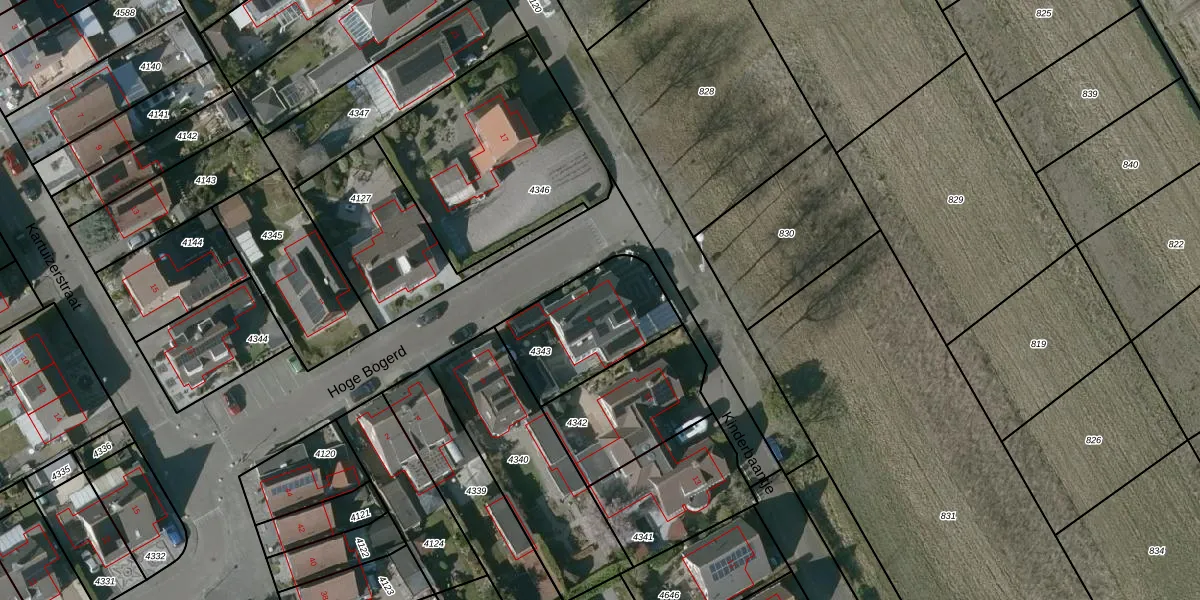 Het perceel waarop Hoge Bogerd 8 staat heeft een oppervlakte van 412 m². Dit is een groot perceel. De perceeloppervlakte wordt geregistreerd door het Kadaster. Gedetailleerde informatie over de maten van dit perceel kunt u vinden in het rapport Kadastrale kaart met maatvoering van Hoge Bogerd 8.