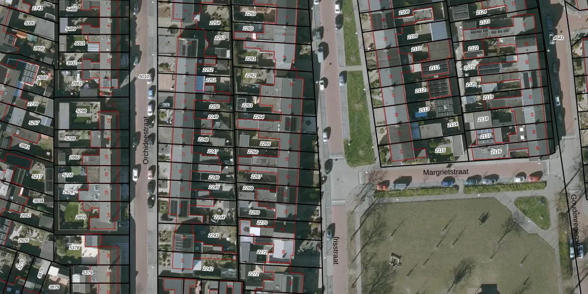 Het perceel waarop Irisstraat 16 staat heeft een oppervlakte van 169 m². Dit is een middelgroot perceel. De perceeloppervlakte wordt geregistreerd door het Kadaster. Gedetailleerde informatie over de maten van dit perceel kunt u vinden in het rapport Kadastrale kaart met maatvoering van Irisstraat 16.