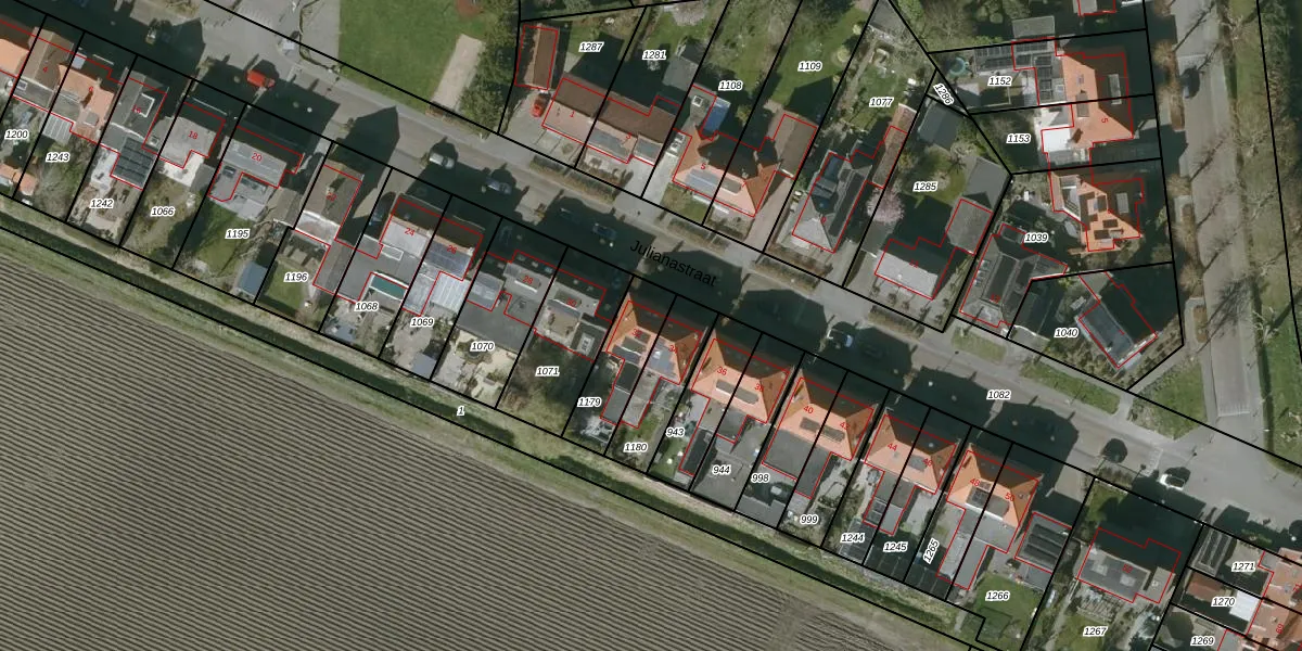 Julianastraat 32 is gelegen op kadastraal perceel SBG02V1179. Deze kadastrale aanduiding is uniek en wordt gebruikt door het Kadaster om eigendomsrechten en andere zakelijke rechten vast te leggen. Het perceel maakt onderdeel uit van de kadastrale gemeente Steenbergen.
