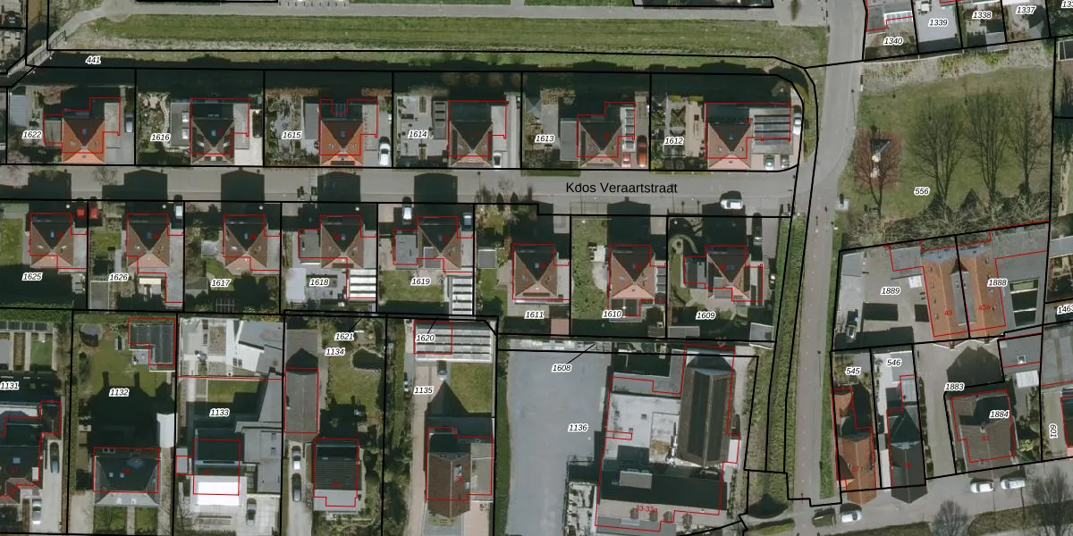 Koos Veraartstraat 24 is gelegen op kadastraal perceel SBG02F1611. Deze kadastrale aanduiding is uniek en wordt gebruikt door het Kadaster om eigendomsrechten en andere zakelijke rechten vast te leggen. Het perceel maakt onderdeel uit van de kadastrale gemeente Steenbergen.