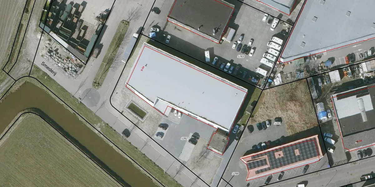 Het perceel waarop Koperslagerij 9-a staat heeft een oppervlakte van 3609 m². Dit is een zeer groot perceel. De perceeloppervlakte wordt geregistreerd door het Kadaster. Gedetailleerde informatie over de maten van dit perceel kunt u vinden in het rapport Kadastrale kaart met maatvoering van Koperslagerij 9-a.
