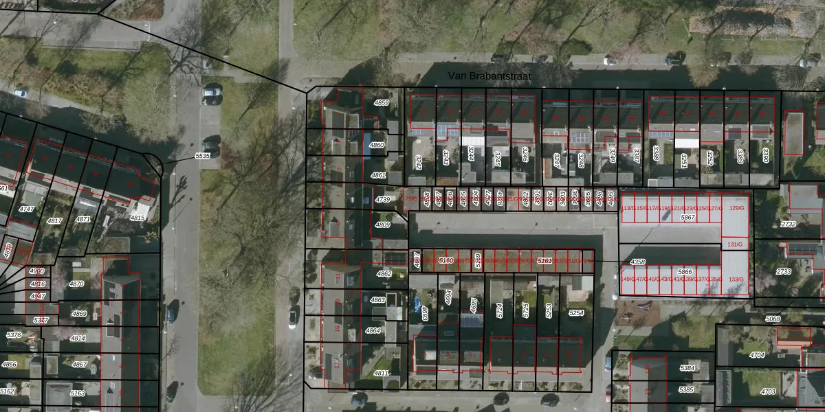Het perceel waarop het adres ligt is SBG02-Q-4739. De afkorting 'SBG02' staat voor kadastrale gemeente Steenbergen. Het perceel is kleiner dan gemiddeld in Steenbergen. Het perceel is 189 m² groot, terwijl het gemiddelde ligt op 7157,37 m². De grootste perceeloppervlakte in de kadastrale gemeente is 54,8 ha. De kleinste oppervlakte bedraagt 0 m². Op het perceel zijn 2 adressen aanwezig. De laatste wijziging in het de Basisregistratie Kadaster (BRK) was op 01-10-2009.
