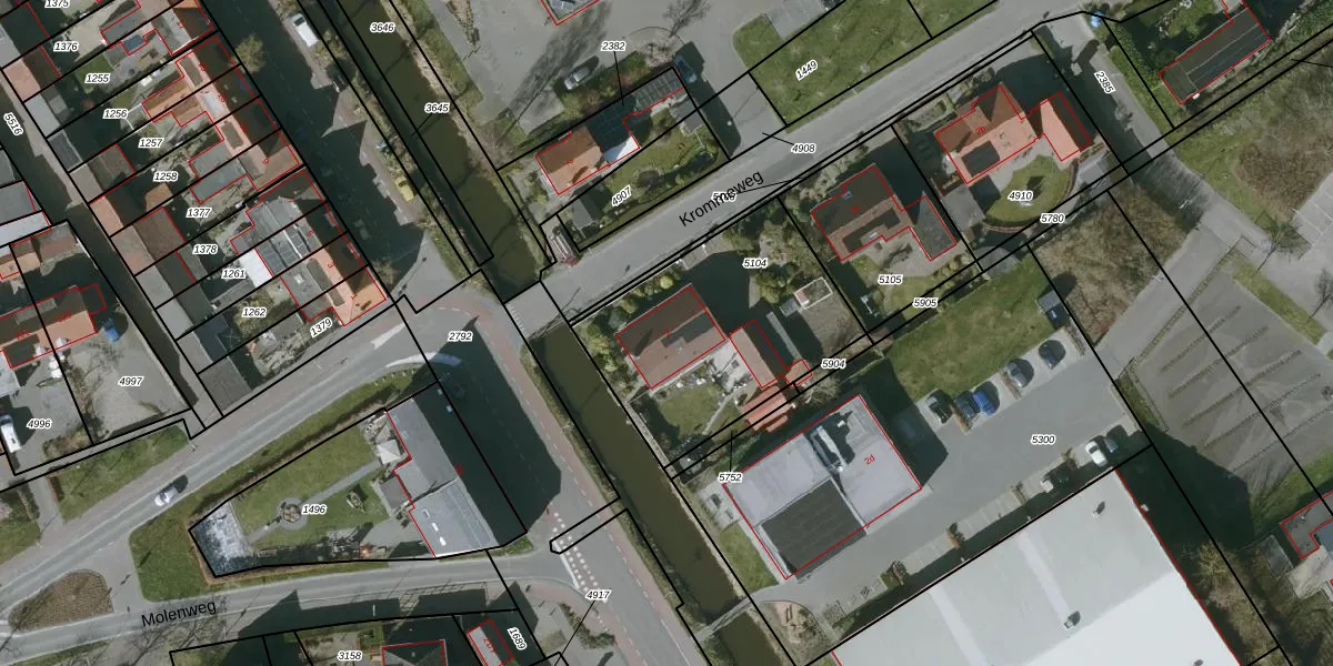 Het perceel waarop Krommeweg 2 staat heeft een oppervlakte van 917 m². Dit is een groot perceel. De perceeloppervlakte wordt geregistreerd door het Kadaster. Gedetailleerde informatie over de maten van dit perceel kunt u vinden in het rapport Kadastrale kaart met maatvoering van Krommeweg 2.