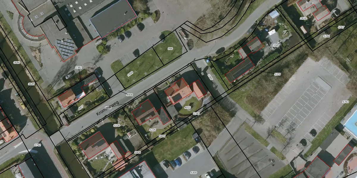 Het perceel waarop Krommeweg 2-b staat heeft een oppervlakte van 612 m². Dit is een groot perceel. De perceeloppervlakte wordt geregistreerd door het Kadaster. Gedetailleerde informatie over de maten van dit perceel kunt u vinden in het rapport Kadastrale kaart met maatvoering van Krommeweg 2-b.