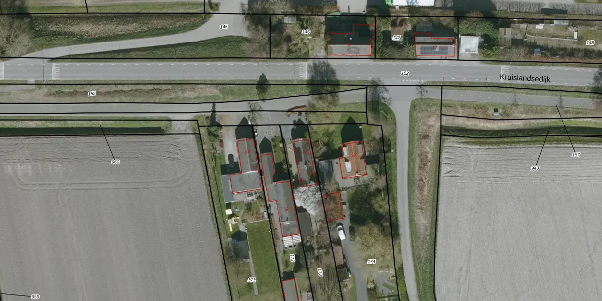 Het perceel waarop Kruislandsedijk 18 staat heeft een oppervlakte van 850 m². Dit is een groot perceel. De perceeloppervlakte wordt geregistreerd door het Kadaster. Gedetailleerde informatie over de maten van dit perceel kunt u vinden in het rapport Kadastrale kaart met maatvoering van Kruislandsedijk 18.