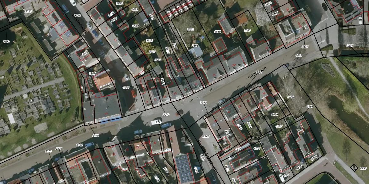 Het perceel waarop Kruispoort 17 staat heeft een oppervlakte van 231 m². Dit is een middelgroot perceel. De perceeloppervlakte wordt geregistreerd door het Kadaster. Gedetailleerde informatie over de maten van dit perceel kunt u vinden in het rapport Kadastrale kaart met maatvoering van Kruispoort 17.
