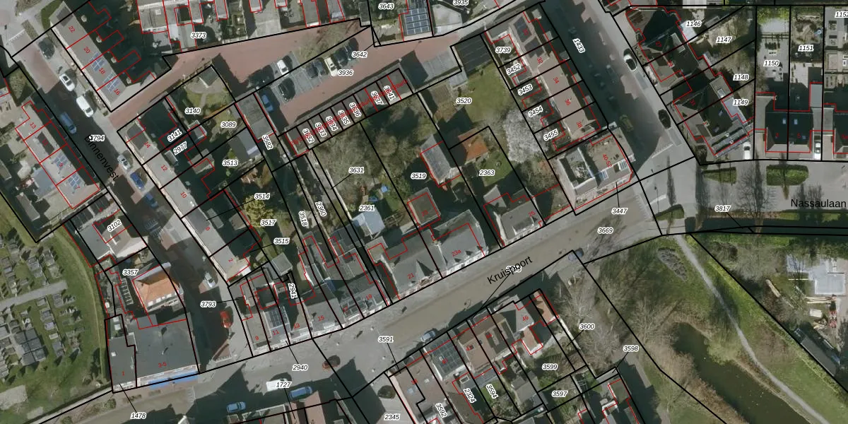 Het perceel waarop Kruispoort 23 staat heeft een oppervlakte van 583 m². Dit is een groot perceel. De perceeloppervlakte wordt geregistreerd door het Kadaster. Gedetailleerde informatie over de maten van dit perceel kunt u vinden in het rapport Kadastrale kaart met maatvoering van Kruispoort 23.