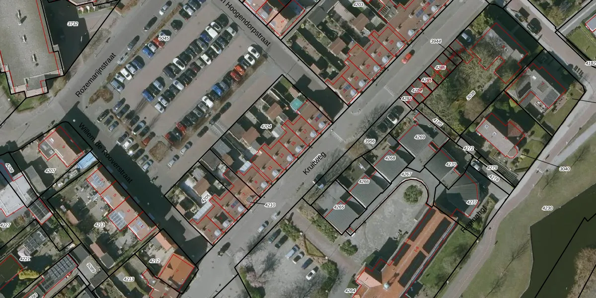 Het perceel waarop Kruitweg 15 staat heeft een oppervlakte van 827 m². Dit is een groot perceel. De perceeloppervlakte wordt geregistreerd door het Kadaster. Gedetailleerde informatie over de maten van dit perceel kunt u vinden in het rapport Kadastrale kaart met maatvoering van Kruitweg 15.