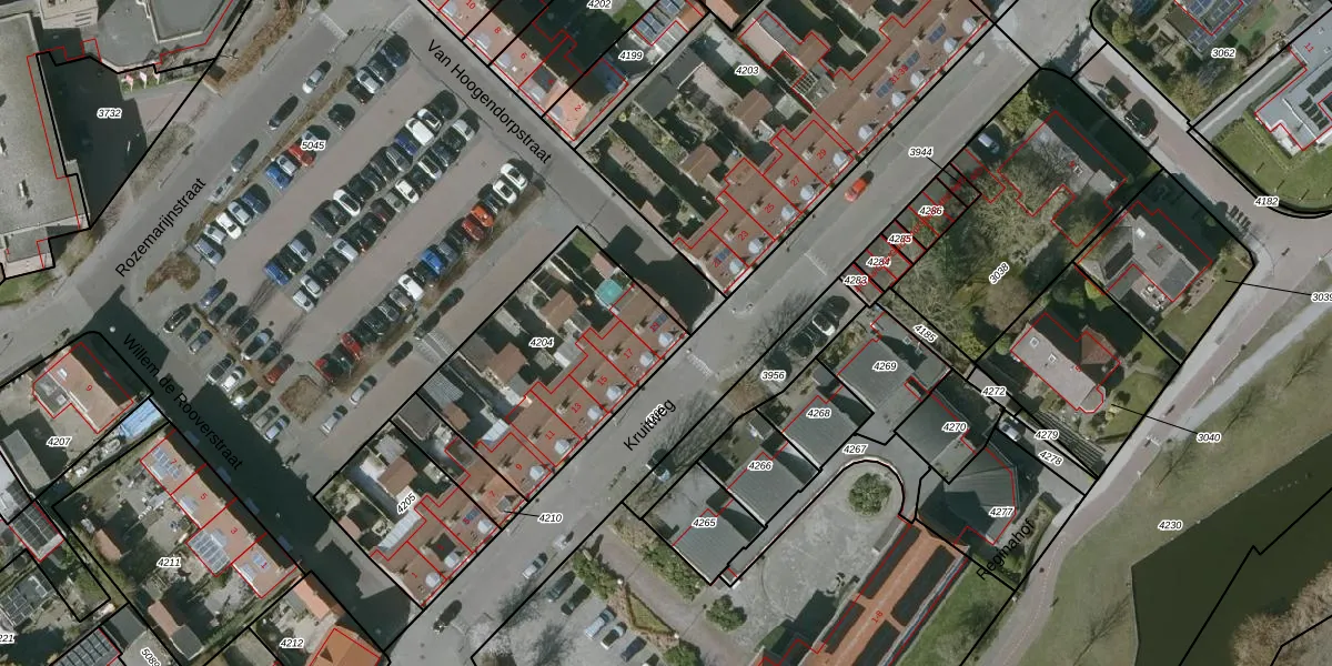 Het perceel waarop Kruitweg 19 staat heeft een oppervlakte van 827 m². Dit is een groot perceel. De perceeloppervlakte wordt geregistreerd door het Kadaster. Gedetailleerde informatie over de maten van dit perceel kunt u vinden in het rapport Kadastrale kaart met maatvoering van Kruitweg 19.