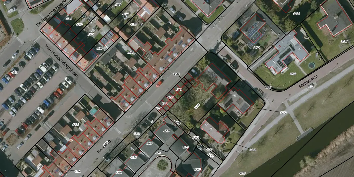 Kruitweg 4-e-G is gelegen op kadastraal perceel SBG02W4286. Deze kadastrale aanduiding is uniek en wordt gebruikt door het Kadaster om eigendomsrechten en andere zakelijke rechten vast te leggen. Het perceel maakt onderdeel uit van de kadastrale gemeente Steenbergen.
