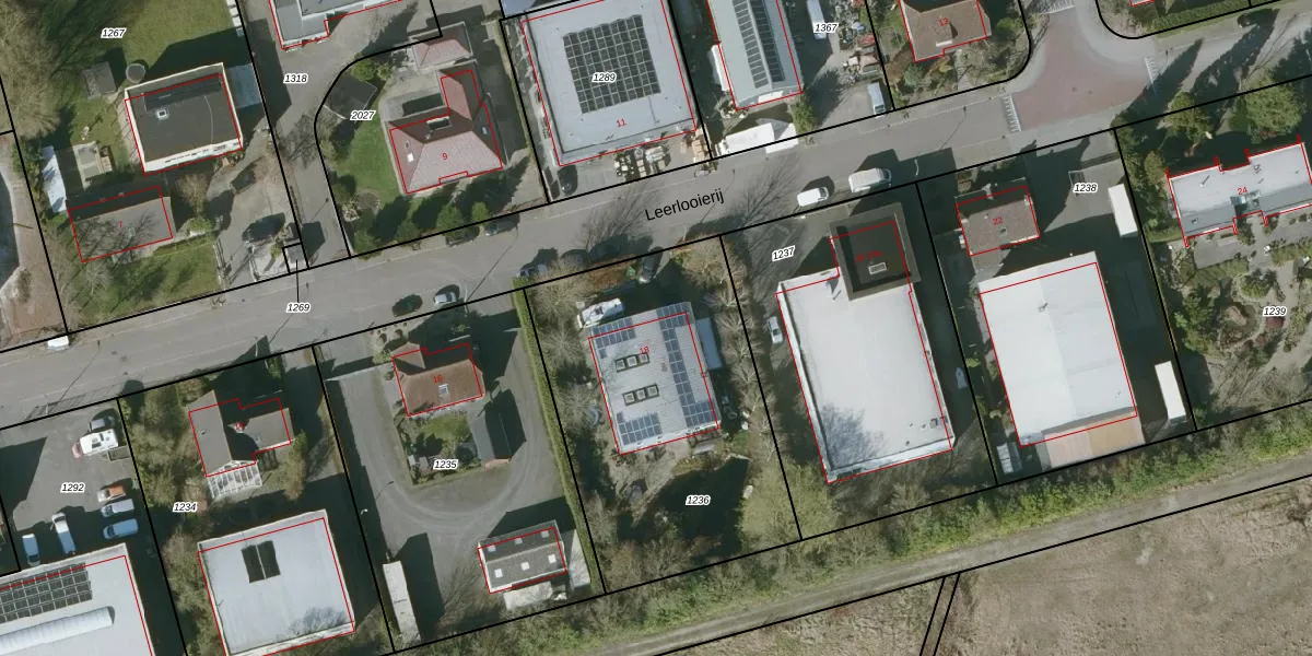 Het perceel waarop Leerlooierij 18 staat heeft een oppervlakte van 1495 m². Dit is een zeer groot perceel. De perceeloppervlakte wordt geregistreerd door het Kadaster. Gedetailleerde informatie over de maten van dit perceel kunt u vinden in het rapport Kadastrale kaart met maatvoering van Leerlooierij 18.