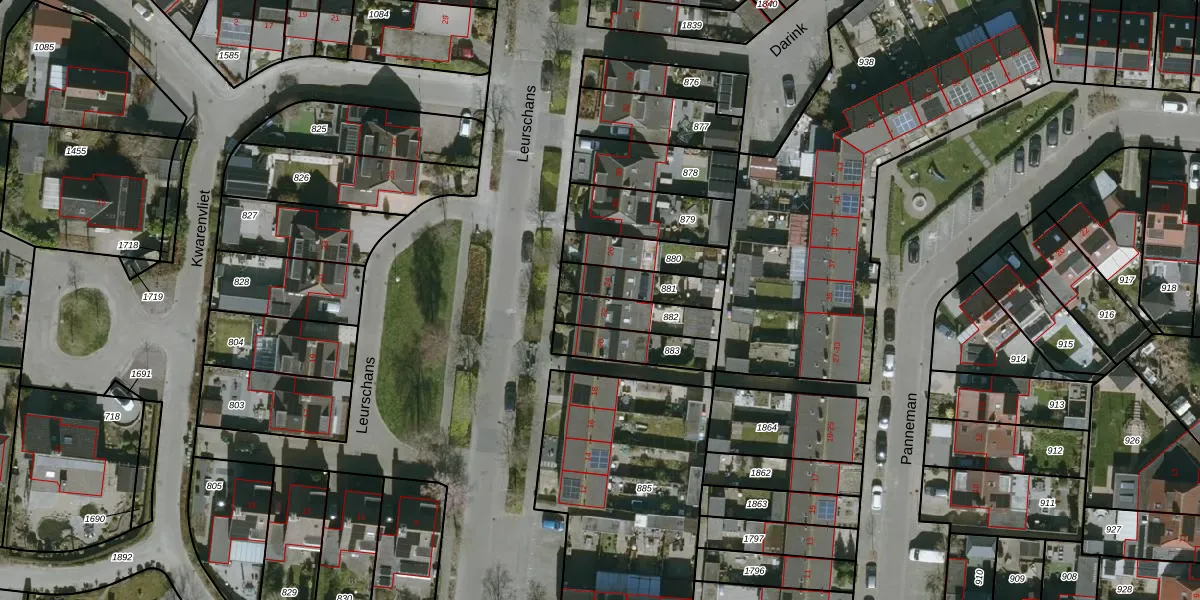 Gebruik de zoekbalk of klik op een perceel voor informatie over de adressen binnen dit perceel.