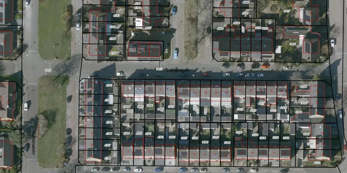 Gebruik de zoekbalk of klik op een perceel voor informatie over de adressen binnen dit perceel.