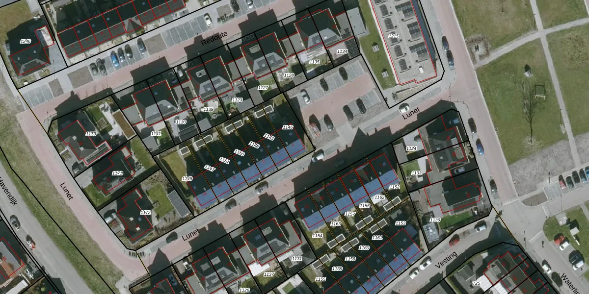 Het perceel waarop Lunet 1 staat heeft een oppervlakte van 192 m². Dit is een middelgroot perceel. De perceeloppervlakte wordt geregistreerd door het Kadaster. Gedetailleerde informatie over de maten van dit perceel kunt u vinden in het rapport Kadastrale kaart met maatvoering van Lunet 1.