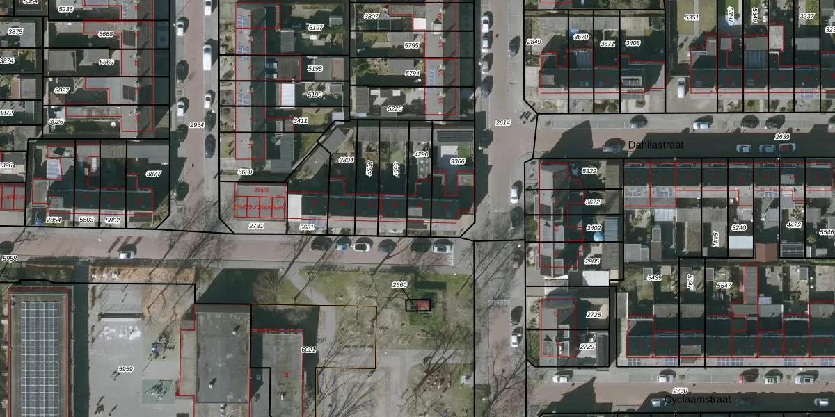 De informatie over dit adres is afkomstig uit officiële overheidsregistraties, voornamelijk de Basisregistratie Adressen en Gebouwen (BAG) en de Basisregistratie Kadaster (BRK). Deze gegevens worden beheerd door respectievelijk gemeenten en het Kadaster, en worden regelmatig bijgewerkt. Energielabelgegevens komen uit de database van de Rijksdienst voor Ondernemend Nederland (RVO).