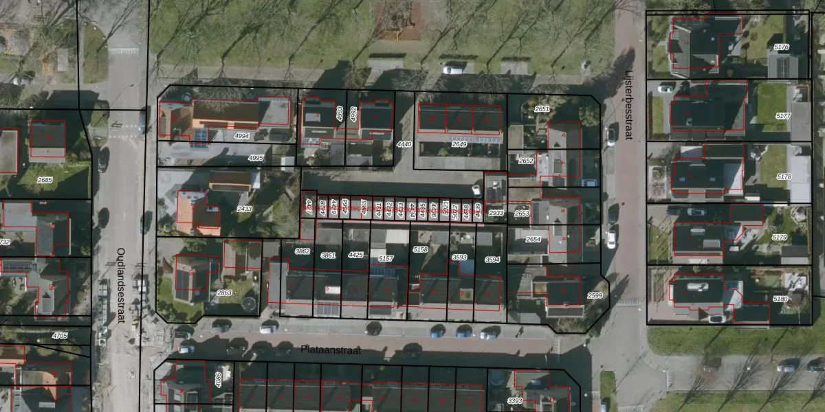 Gebruik de zoekbalk of klik op een perceel voor informatie over de adressen binnen dit perceel.