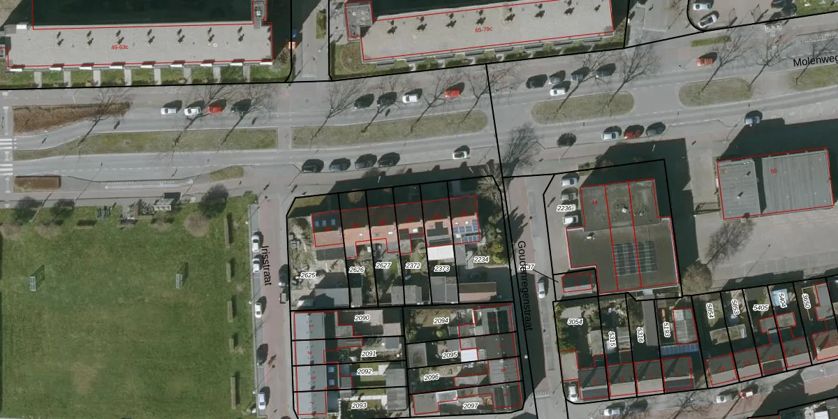 Gebruik de zoekbalk of klik op een perceel voor informatie over de adressen binnen dit perceel.