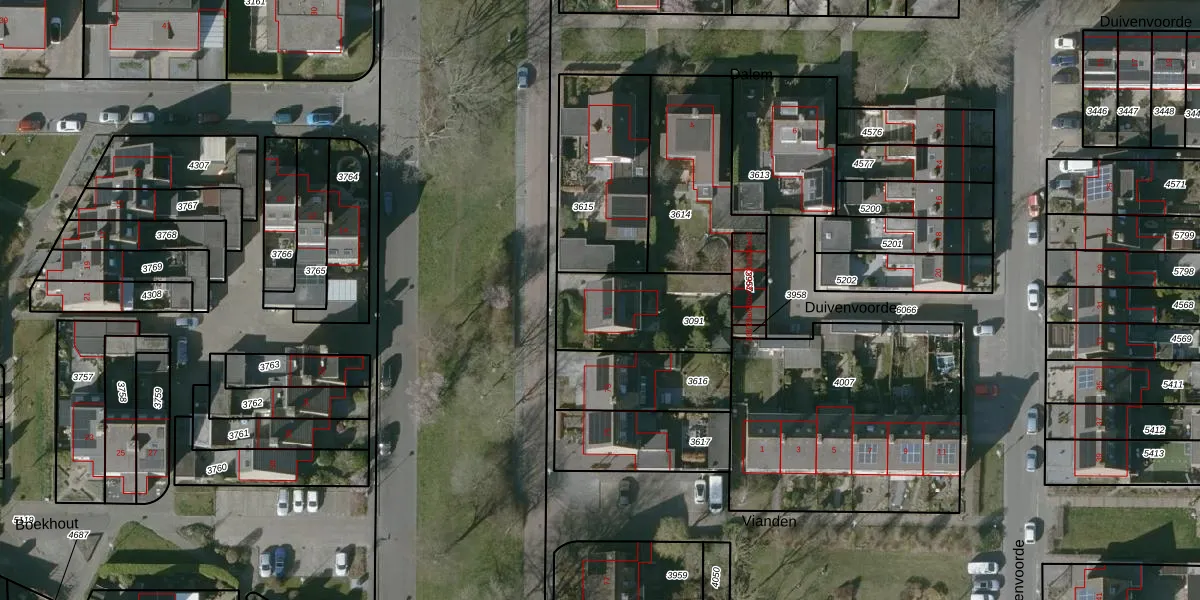 Gebruik de zoekbalk of klik op een perceel voor informatie over de adressen binnen dit perceel.