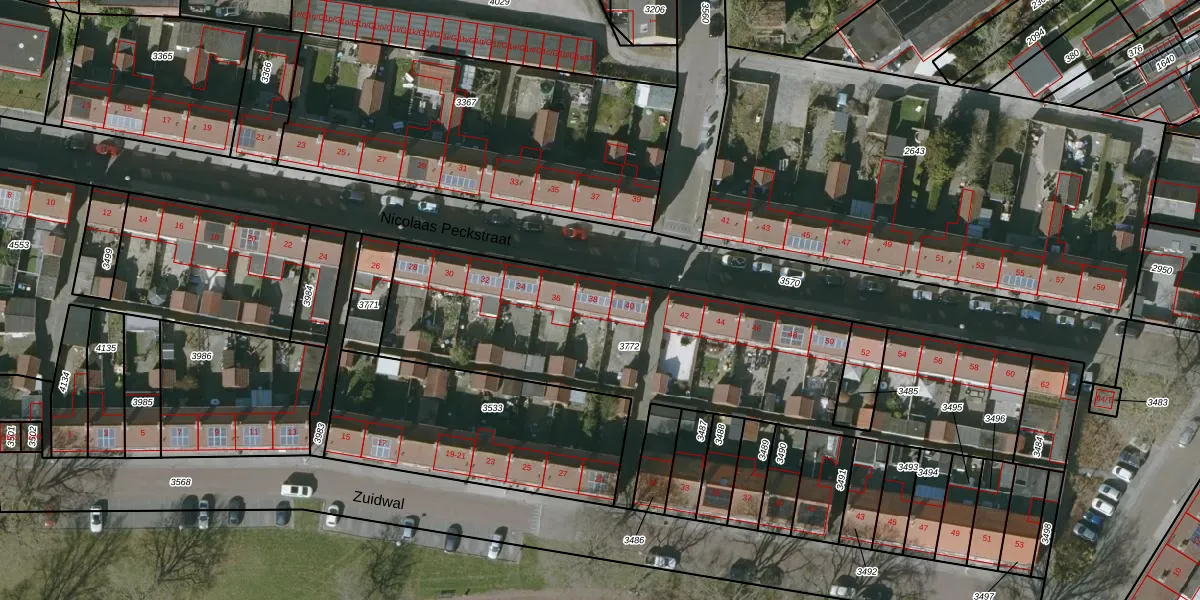 Het perceel waarop Nicolaas Peckstraat 38 staat heeft een oppervlakte van 2019 m². Dit is een zeer groot perceel. De perceeloppervlakte wordt geregistreerd door het Kadaster. Gedetailleerde informatie over de maten van dit perceel kunt u vinden in het rapport Kadastrale kaart met maatvoering van Nicolaas Peckstraat 38.