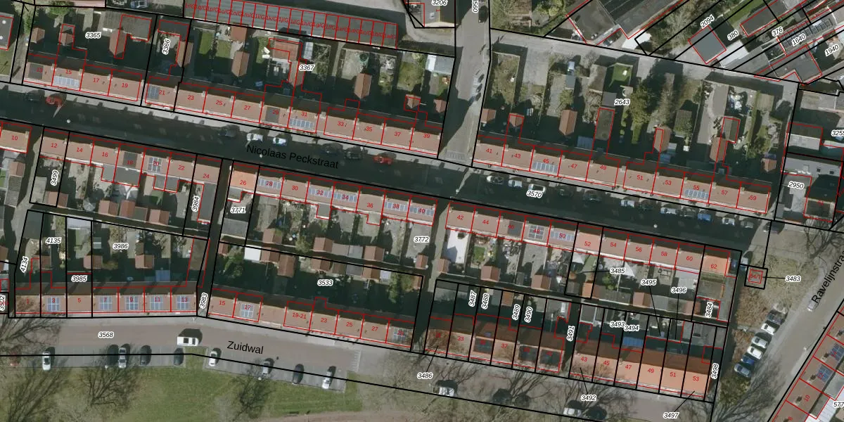 Het perceel waarop Nicolaas Peckstraat 40 staat heeft een oppervlakte van 2019 m². Dit is een zeer groot perceel. De perceeloppervlakte wordt geregistreerd door het Kadaster. Gedetailleerde informatie over de maten van dit perceel kunt u vinden in het rapport Kadastrale kaart met maatvoering van Nicolaas Peckstraat 40.