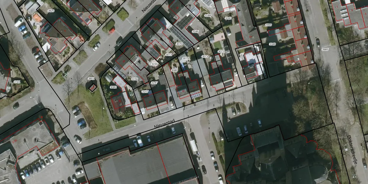 Nieuwstad 10 is gelegen op kadastraal perceel SBG02W3080. Deze kadastrale aanduiding is uniek en wordt gebruikt door het Kadaster om eigendomsrechten en andere zakelijke rechten vast te leggen. Het perceel maakt onderdeel uit van de kadastrale gemeente Steenbergen.