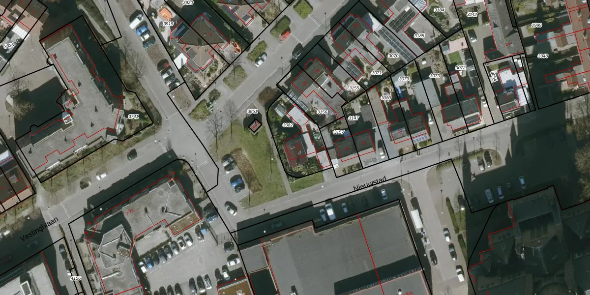 Het perceel waarop Nieuwstad 16 staat heeft een oppervlakte van 362 m². Dit is een groot perceel. De perceeloppervlakte wordt geregistreerd door het Kadaster. Gedetailleerde informatie over de maten van dit perceel kunt u vinden in het rapport Kadastrale kaart met maatvoering van Nieuwstad 16.