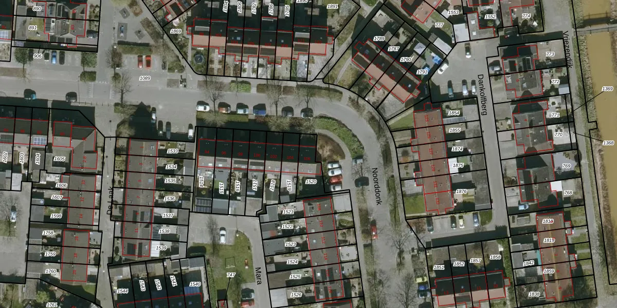 Gebruik de zoekbalk of klik op een perceel voor informatie over de adressen binnen dit perceel.