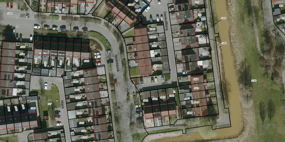 Het perceel waarop Noorddonk 133 staat heeft een oppervlakte van 364 m². Dit is een groot perceel. De perceeloppervlakte wordt geregistreerd door het Kadaster. Gedetailleerde informatie over de maten van dit perceel kunt u vinden in het rapport Kadastrale kaart met maatvoering van Noorddonk 133.